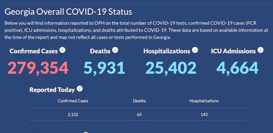 Here’s the Covid-19 pandemic report from the Georgia Department of Public Health as of 2:50 p.m., Sept. 4.